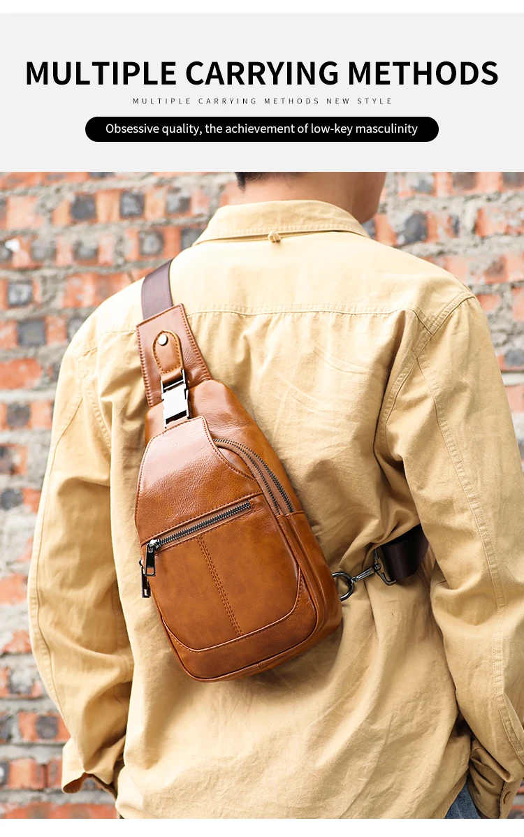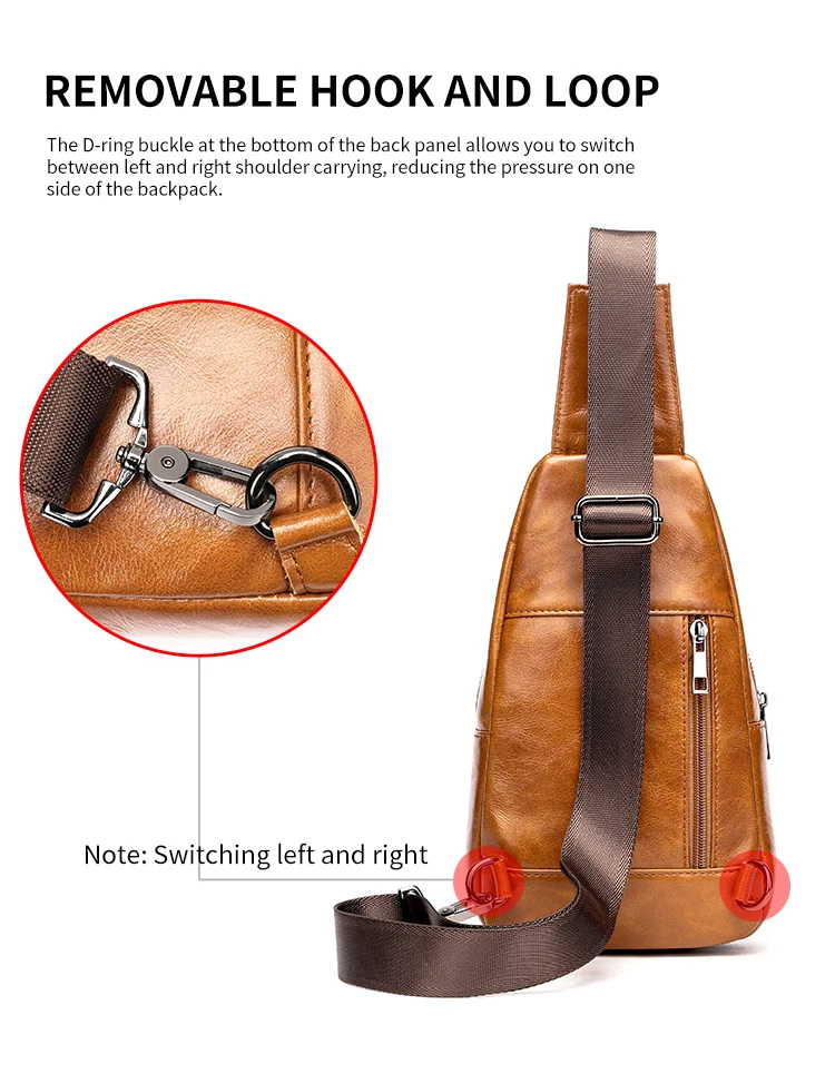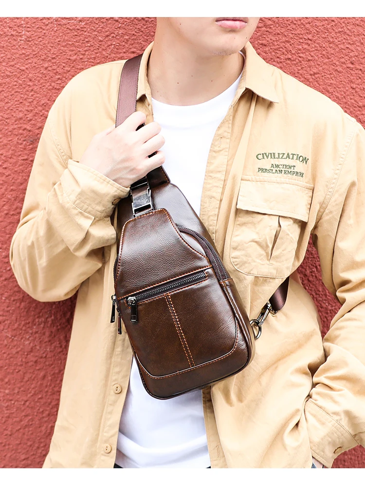 WESTAL Genuine Leather Sling Bags Men Zipper Designer Chest Pack for 7.9” Tablet, Travelling Chest Bags for Phone Messenger Bag